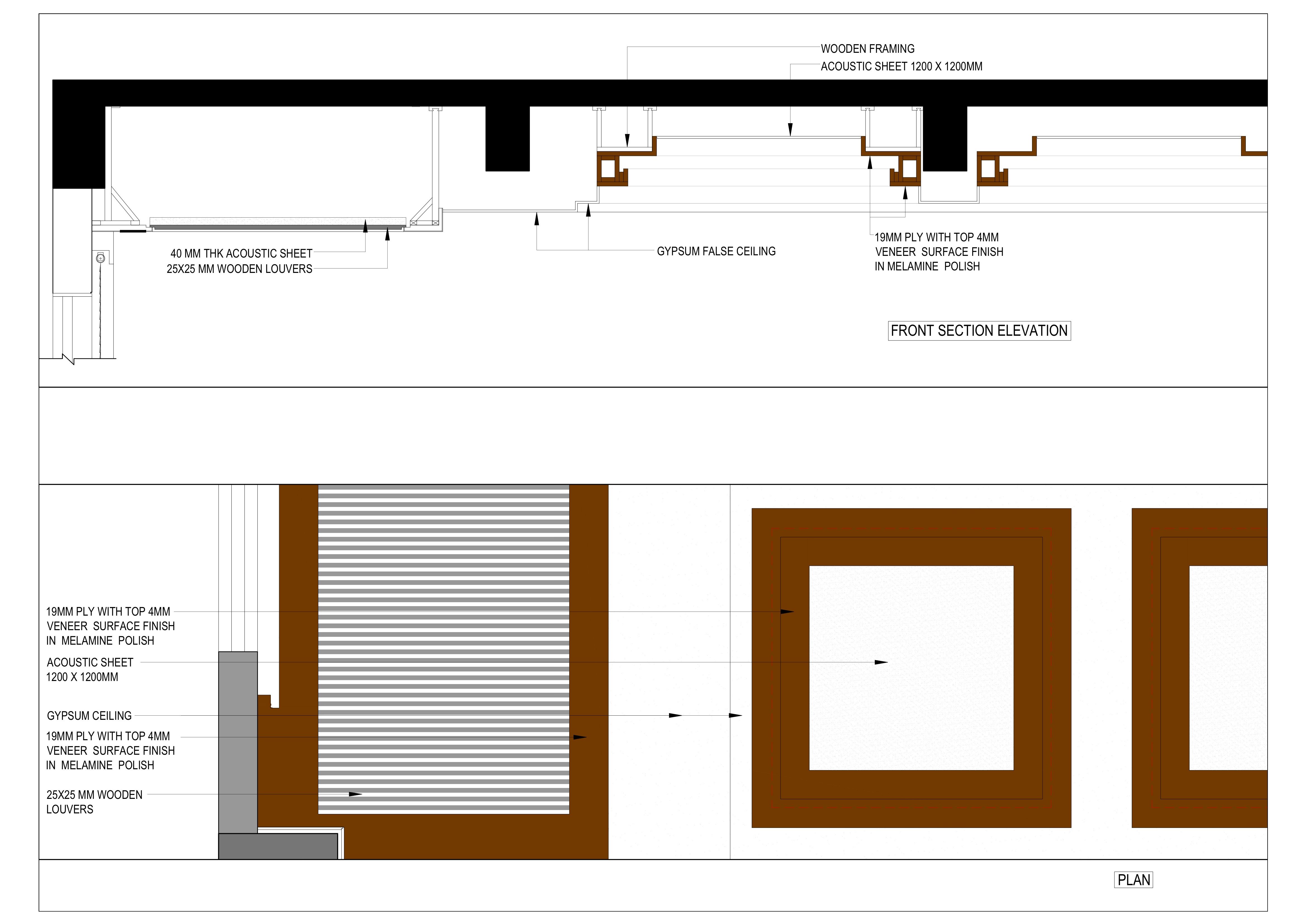 Each detail of the restaurant from the décor, and seating to the artwork, contributes to the restaurant’s relaxing and comfortable vibe. Sound proofing and acoustics play an integral role right from the conceptual design stages. Sound absorbing elements such as a wooden ceiling, acoustic ceiling sheets and decorative fabric panels on the wall ensure that all overpowering sounds are eliminated. The fabric panelling with rock wool filling provides an interesting backdrop for the seating along the length of the restaurant, while absorbing sound significantly. The ceiling above the seating along the length of the restaurant is lower & is clad with wooden strip panels. The panels are insulated with rock wool from inside, which act as sound absorbers. High performance sound-proof ceiling by St Gobain in the centre, eliminates unnecessary sound. Sound-proof panels have also been installed inside the coffers in the ceiling.