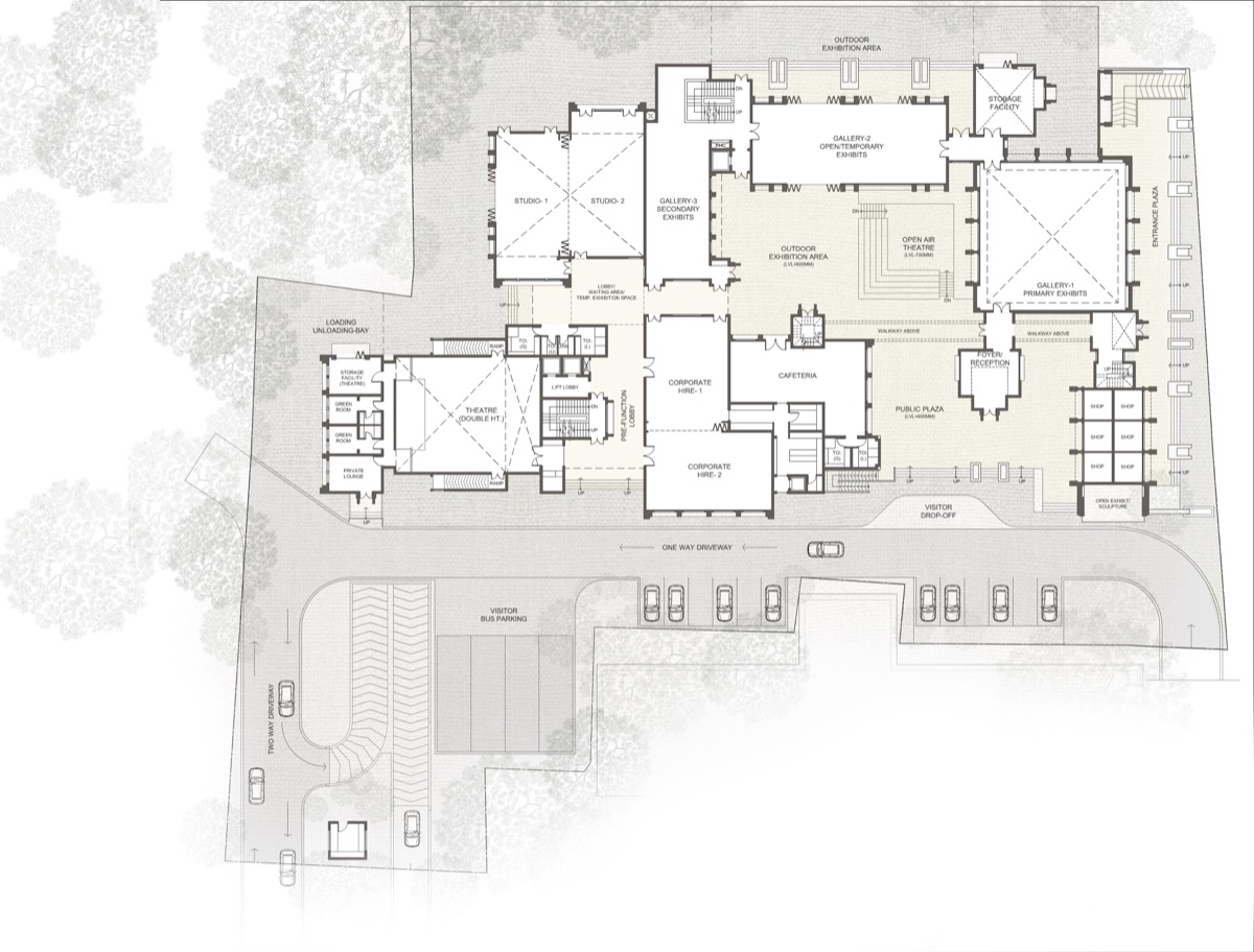 Outdoor public squares/ plazas and walkways comprise of recessed alcoves and niches that are used for public exhibits and allow the users to constantly engage with science and art technologies. Building complex and its façade thus provide an interactive display canvas for exhibitions.