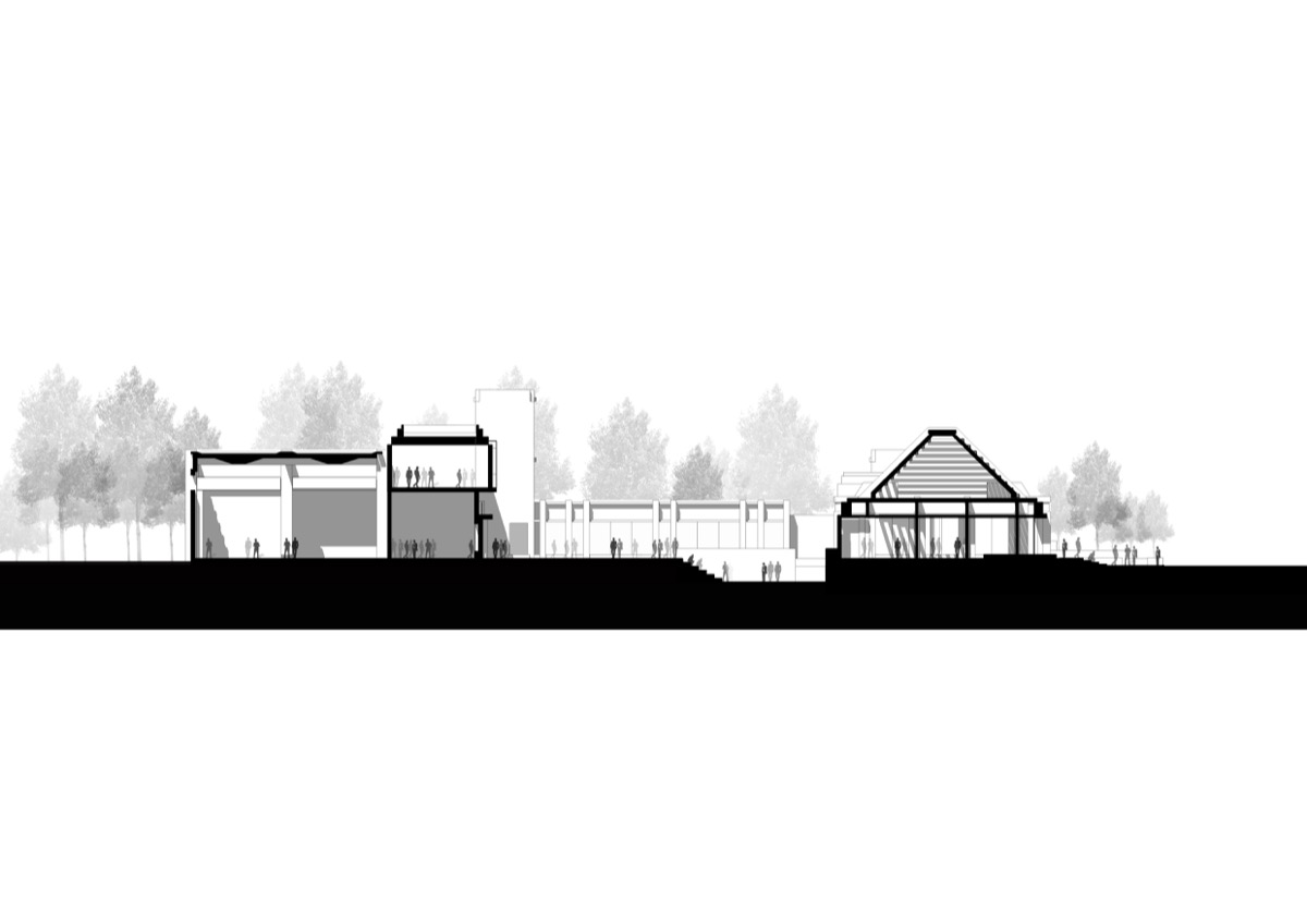 Temporary exhibition spaces work in conjunction with outdoor public squares to provide flexibility. This provides a spill out zone to display large outdoor exhibits and provide an interactive and engaging exhibition space.