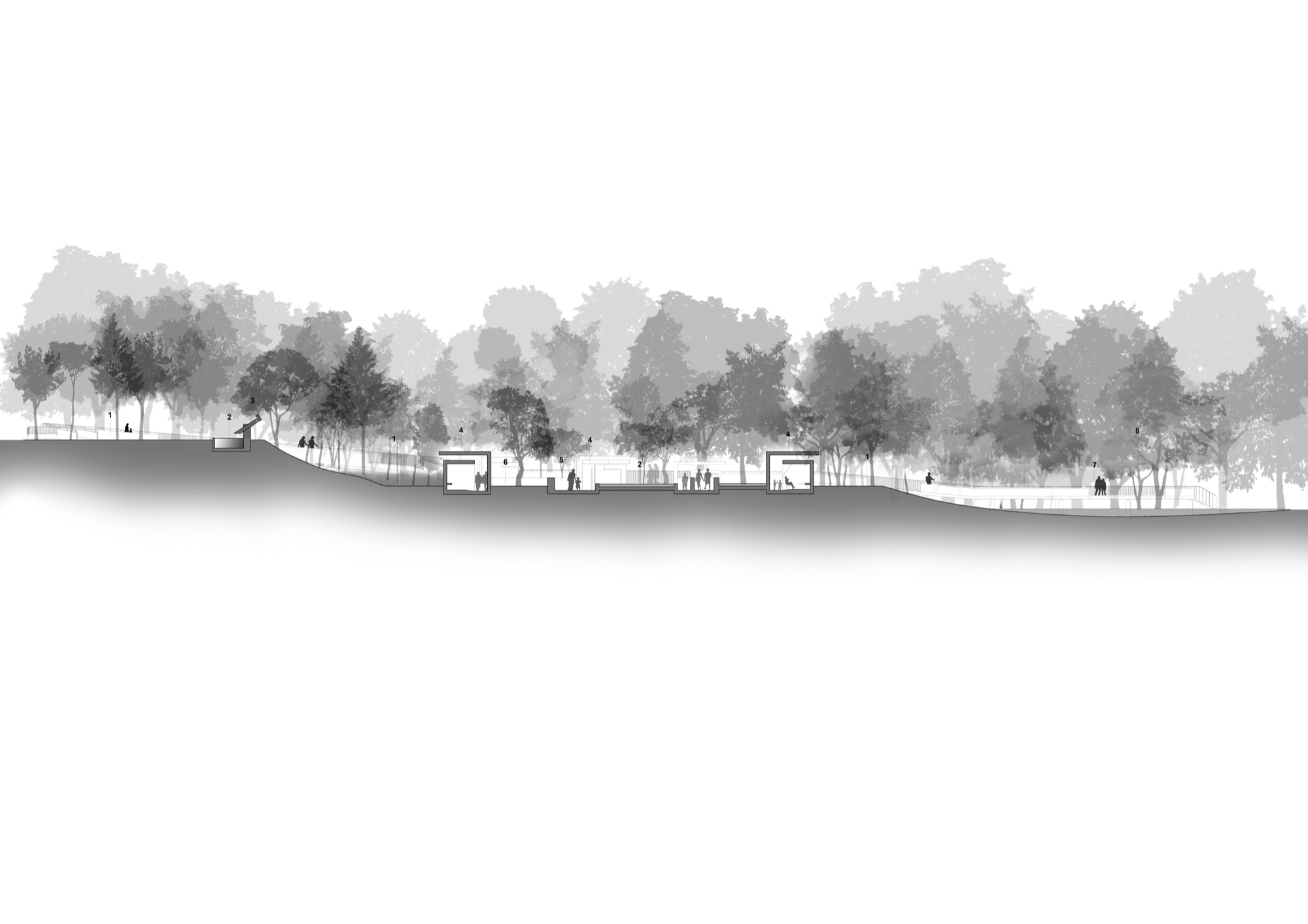 The Memorial is spread in all there sections of the site, proposed to be implemented in 3 phases. The design proposes easily deployable, locally accessible construction technologies to make the project as a participative endeavour to some level. Simple RCC construction is proposed for the enclosed and semi-enclosed structures. The Paths / Decks are in wood with Mild Steel sub-frames and pre-cast RCC pile / Struts- A complete reliance to accessible technologies to make the project viable to build and maintain in the long run.