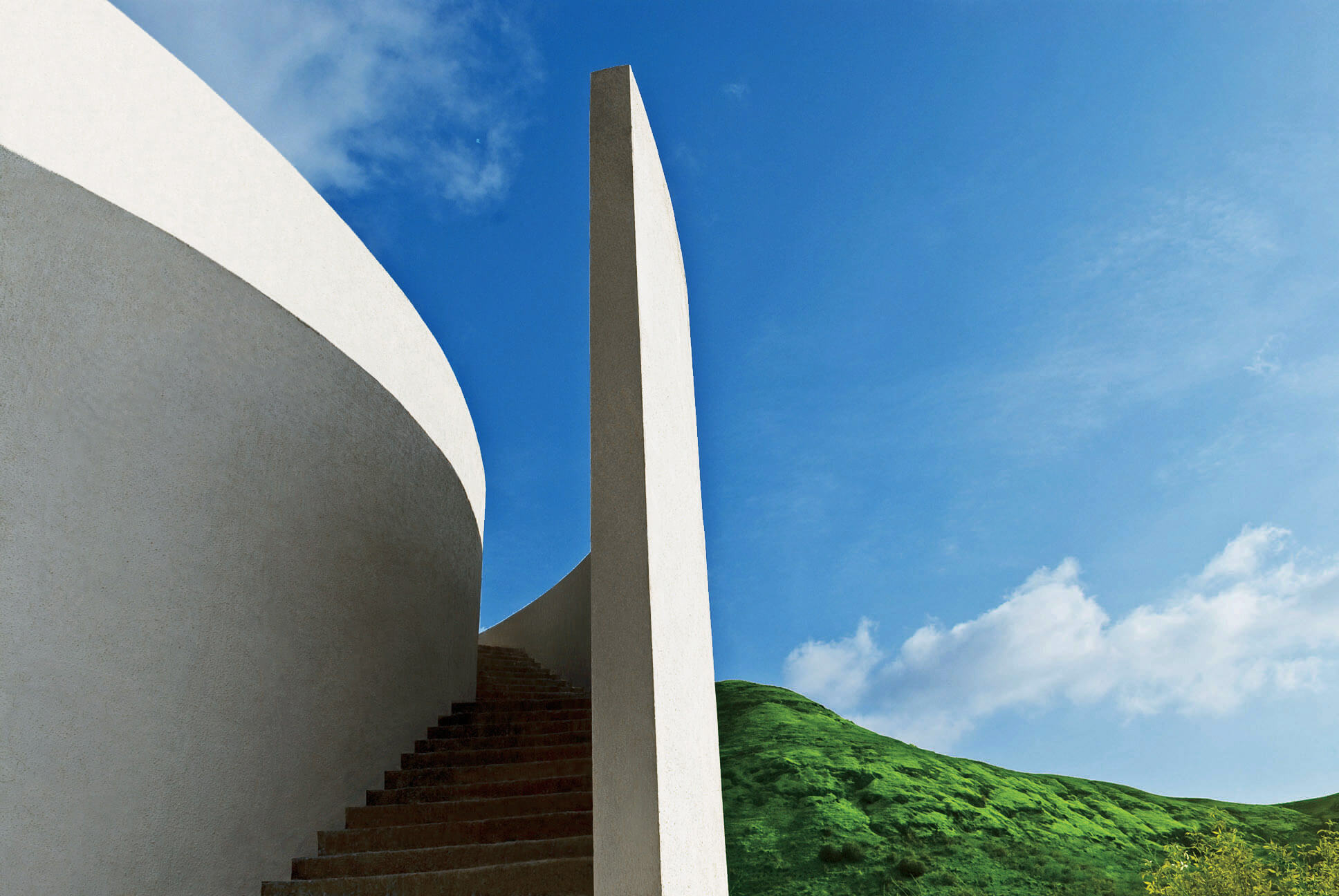 Even though this made the construction process difficult, the building blocks emerging unexpectedly from the valley was striking when seen from the road. The contours also helped in creating stepped platforms within the building, helping the manufacturing process of wine using gravity. It was a preferred way of making wine where the grape crusher is located at higher level and the tanks are located below to avoid pumping.